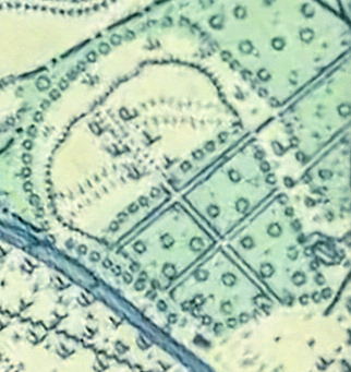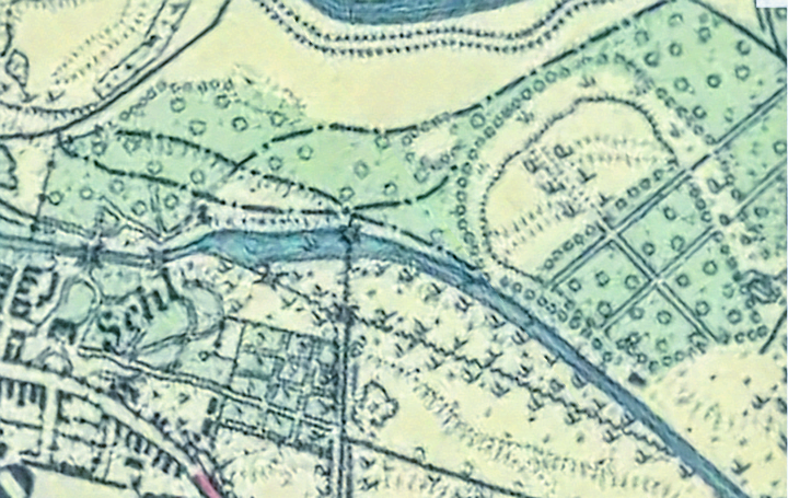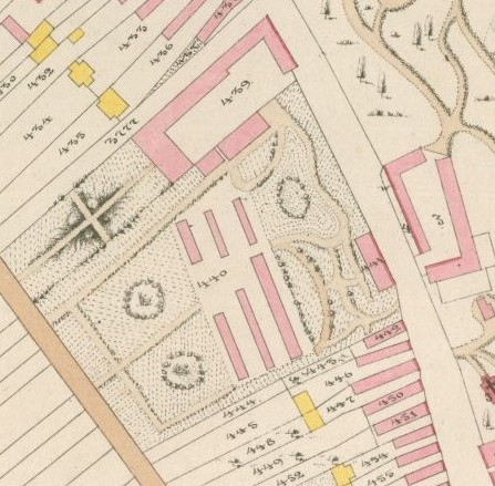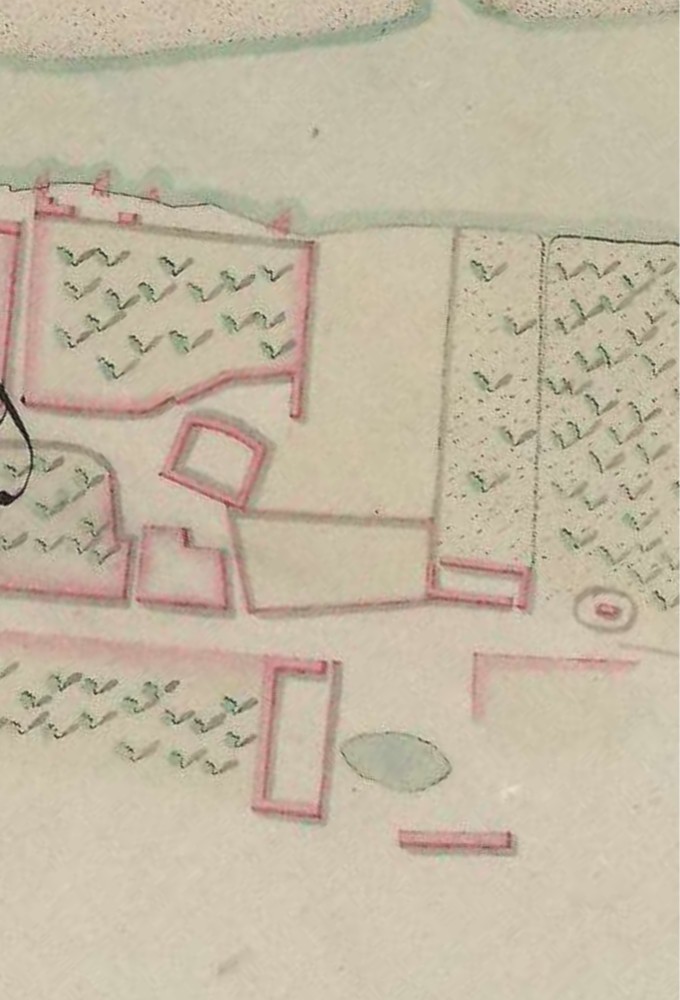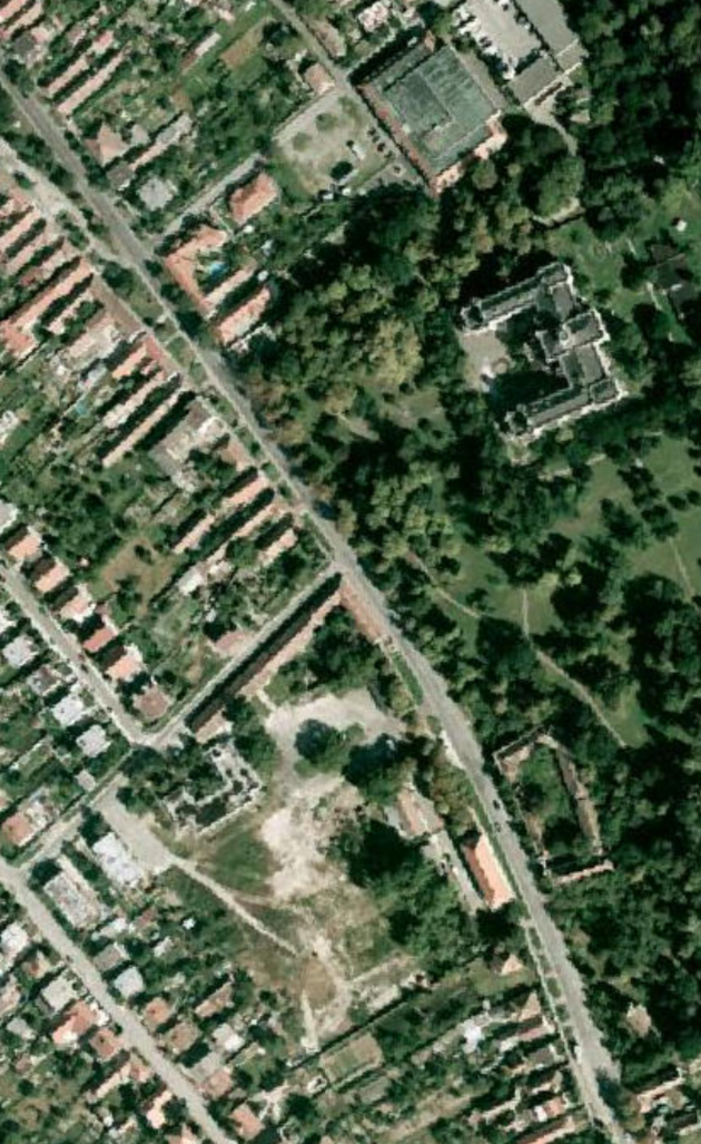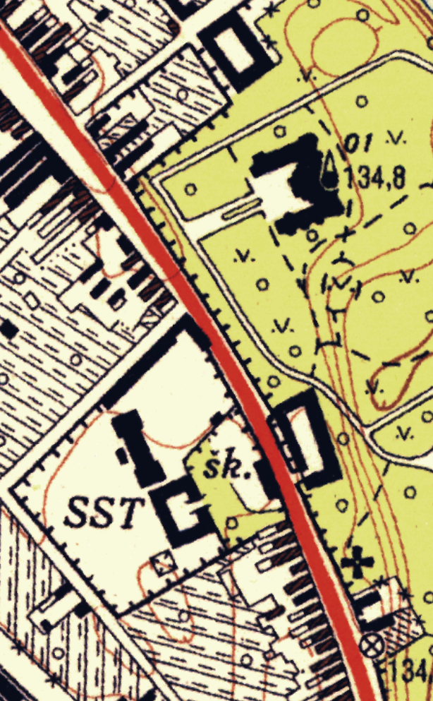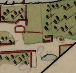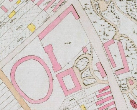 Táto katastrálna mapa zobrazuje územie 16 rokov pred vybudovaním tréningového centra. Na tomto mieste akoby cez cestu pokračoval zámocký park ďalej. V strede sa potom črtalo 6 pozdĺžnych budov rôznej veľkosti. Určenie na čo boli tieto budovy určené si vyžaduje ďalšie bádanie. Tento areál s budovami bol v roku 1856 ešte relatívne nový. Musel byť vybudovaný niekedy medzi rokmi 1852 a 1856, keďže na zjednodušenej katastrálnej mape z roku 1852 je zobrazený ešte starý areál so štvorcovým jazierkom: