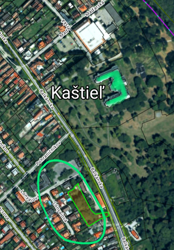 Katastrálna mapa celkový pohľad rok 2025 (zdroj: Kataster nehnuteľností, ÚGKK SR, https://zbgis.skgeodesy.sk/)