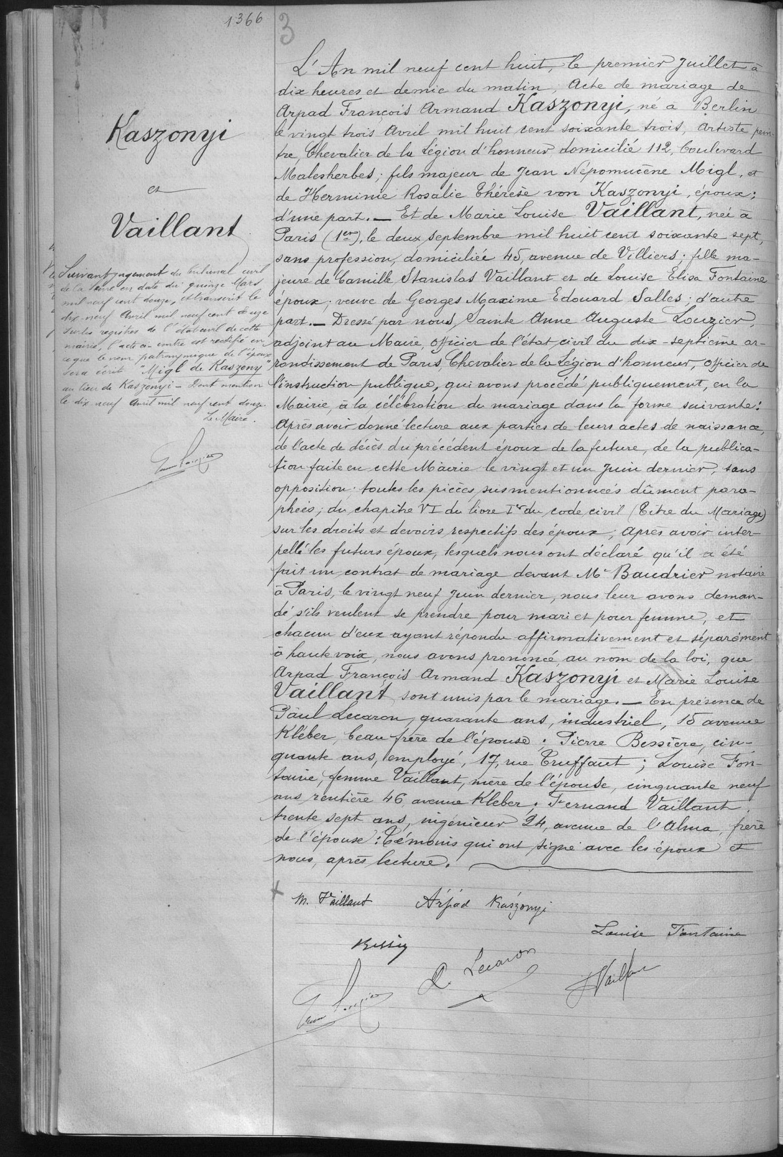 Z tohto manželstva pochádzajúci synovia Hugo, Lazy a Arthur sa stali spoločnými dedičmi otcovského majetku, ktorý zostal v jednotnej správe.