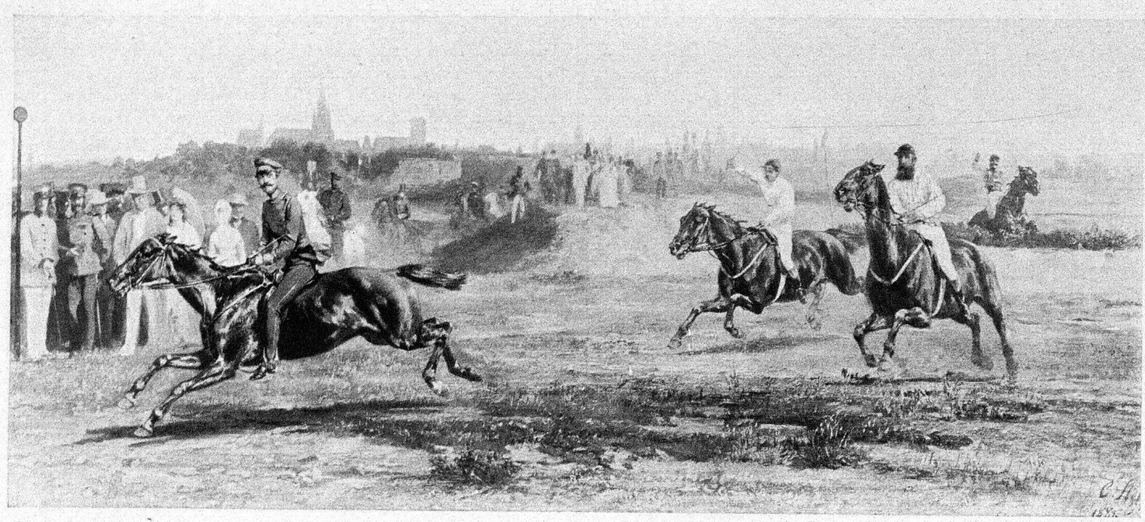 Dostihy: príchod do cieľa - Baden-Baden(Iffezheim) 1867, (Illustrirte Zeitung 28.9.1867)