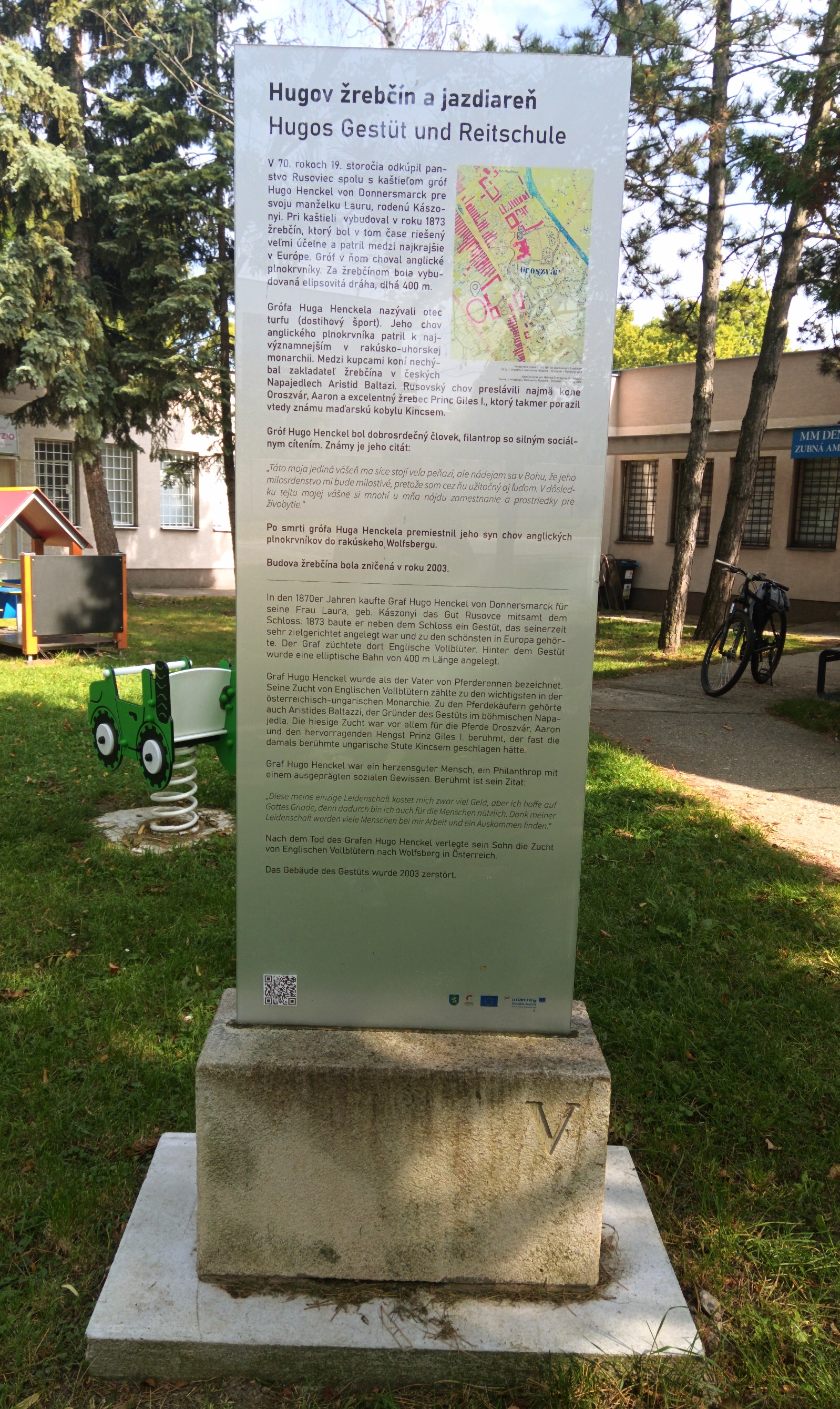 Prvú časť - tréningové centrum - vybudoval gróf neďaleko od kaštieľa na druhej strane cesty oproti čeľadníka.